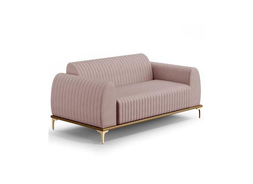 Sofá 2 Lugares Para Sala de Estar Molino 150 cm D02 Pés D'Ouro Veludo Rosê C-305 - Lyam Decor