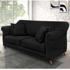 Sofá 2 Lugares Pé De Madeira Julieta 160 Cm Suede S04 Cor Preto