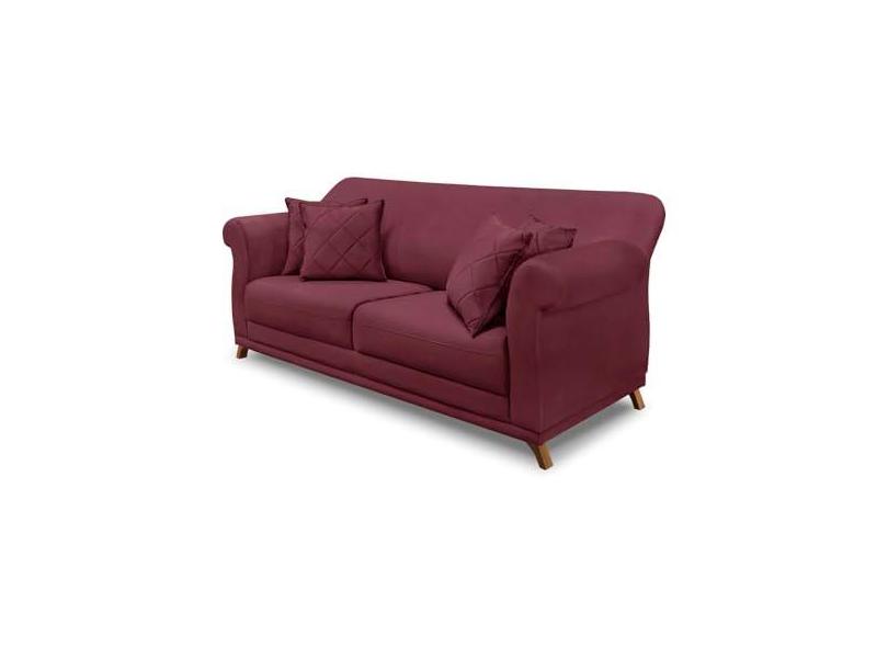 Sofá 2 Lugares Pé de Madeira Julieta 180 cm Veludo Vinho S04 - D'Rossi