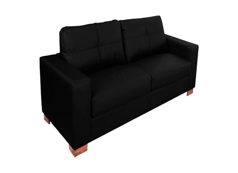 Sofá 2 Lugares Pés Madeira Kenny 160cm Couro Preto Gran Belo