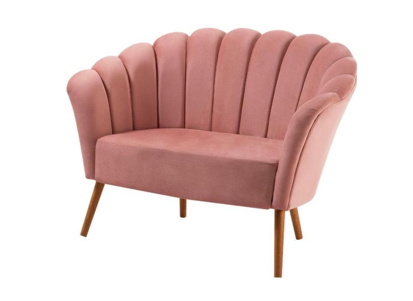Sofá 2 Lugares Petala Daf Móveis 135 cm em Madeira Eucalipto Veludo Rosa Base Madeira Tauari