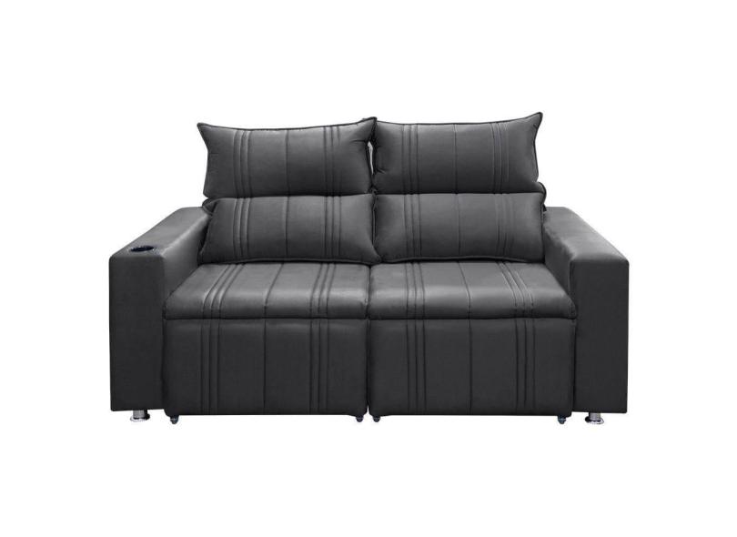 Sofá 2 Lugares Reclinável Madri Suede Shop Das Cabeceiras Chumbo