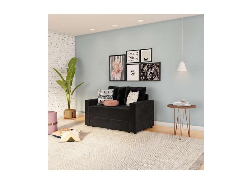 Sofá 2 Lugares Retrátil Aquisgrana Suede Preto 140 Cm - Mobly