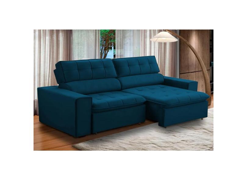 Sofa 2 Lugares Retratil Reclinavel Atenas 2,30 M Suede Azul Marinho