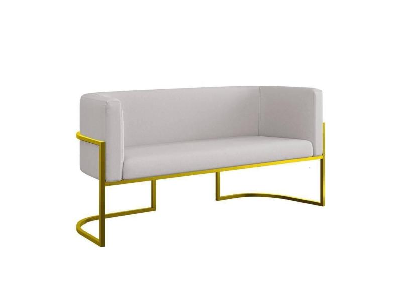 Sofá 2 Lugares Veludo Base Metal Dourada Reforçada Recepção Bege
