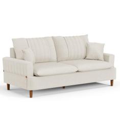Sofá 200cm 3 Lugares Com Almofadas Pés Curvos Veras Linho D05 Cru - Mp