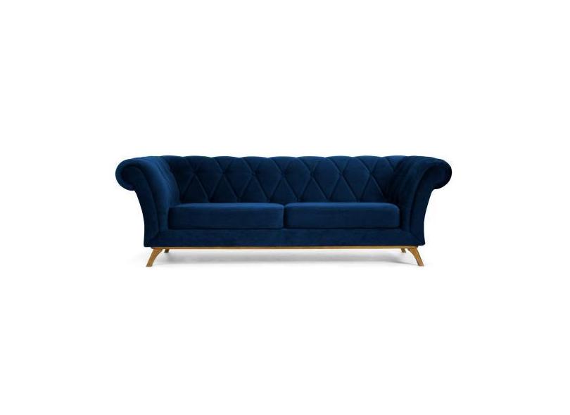 Sofá 210cm 3 Lugares Base Madeira Império B-304 Veludo Azul Marinho -