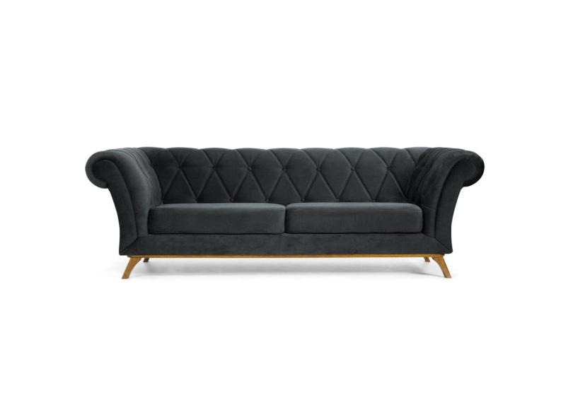 Sofá 210cm 3 Lugares Base Madeira Império B-317 Veludo Cinza - Domi