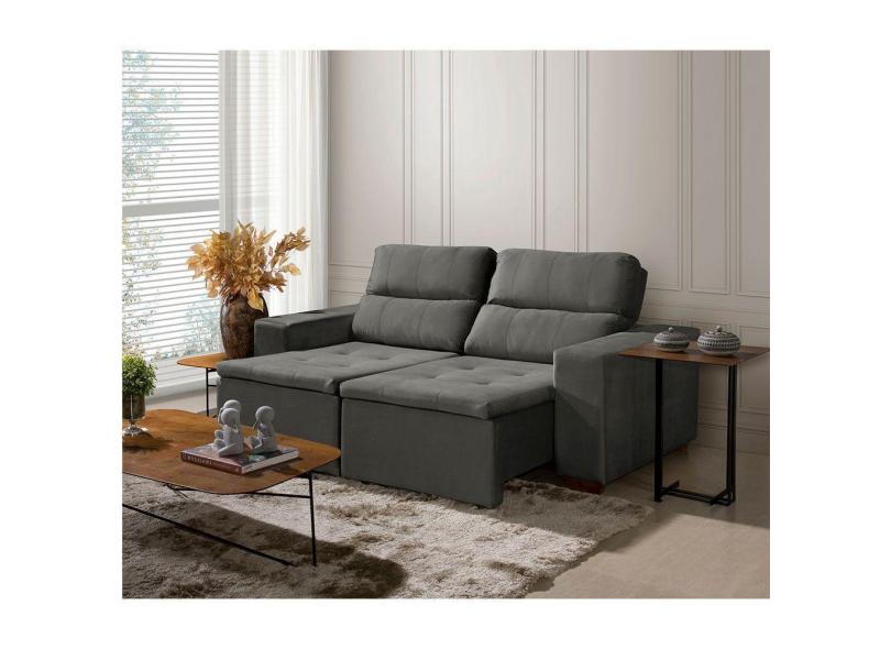 Sofá 3 Lugares 195cm Com Molas, Retrátil E Reclinável Cinza