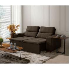 Sofá 3 Lugares 195cm Com Molas, Retrátil E Reclinável Marrom