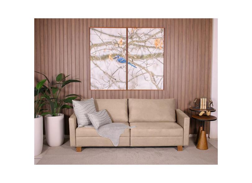 Sofá 3 Lugares 2,00m Fixo Veludo Plaza Bege - Straub Web
