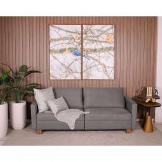 Sofá 3 Lugares 2,00m Fixo Veludo Plaza Cinza - Straub Web