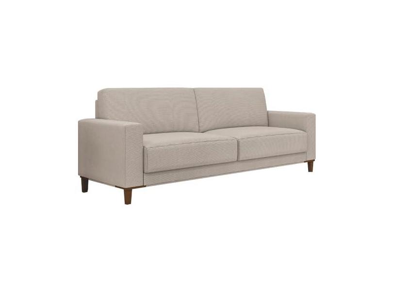 Sofá 3 Lugares 214cm Sala de Estar Living Pés Madeira Viso M03 Linho Cru - Lyam Decor
