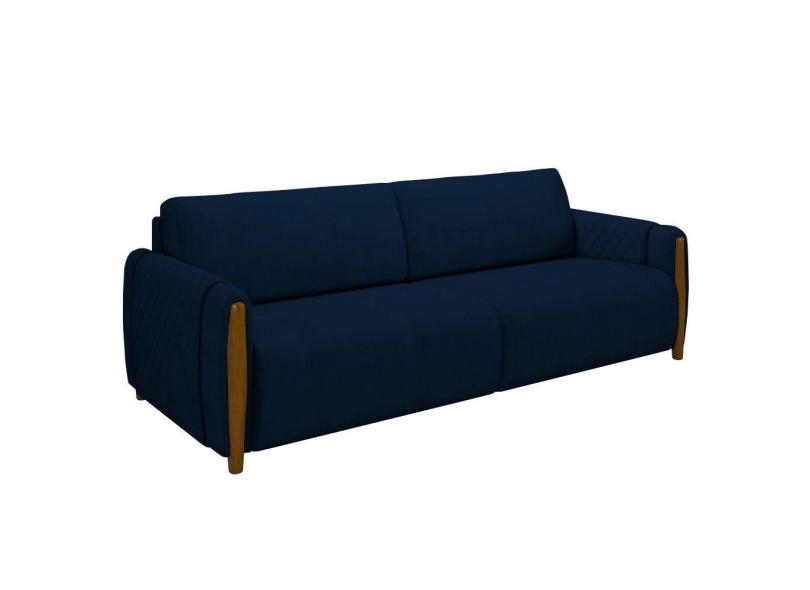Sofá 3 Lugares 223cm Pés Madeira Amaranto M22 Veludo Azul Marinho - Mpozenato