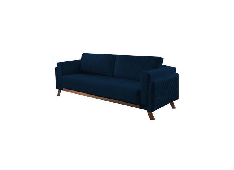 Sofá 3 Lugares Azul Em Veludo 2,07M Eileen - Decorium