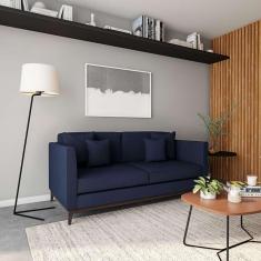 O menor preço encontrado no Brasil para Sofá 3 Lugares Benjamim Base de Madeira Linho Cotton Azul Marinho. atualmente é R$ 1.175,89.