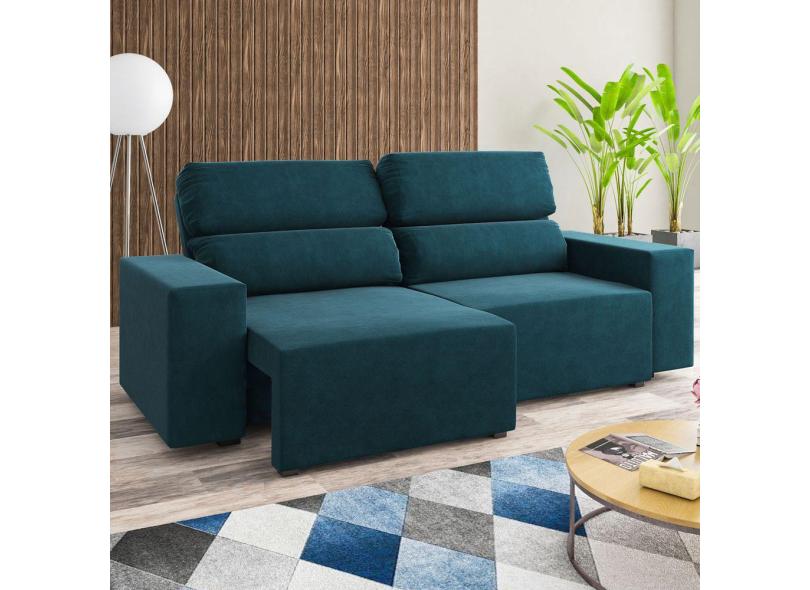 Sofá 3 Lugares Charm Reclinável E Retrátil Azul Infinito - Vian