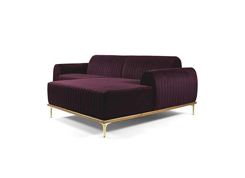 Sofá 3 Lugares com Chaise Direito Para Sala Molino 245 cm D02 Veludo Roxo Grape C-292 -Lyam Decor
