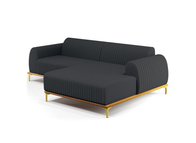 Sofá 3 Lugares com Chaise Direito Sala de Estar Molino 230cm D02 Linho Chumbo D-465 - Lyam Decor