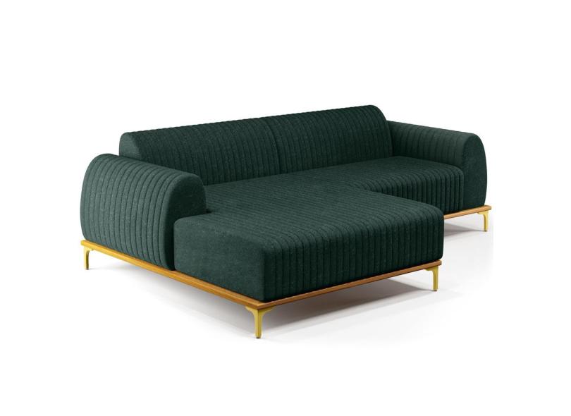 Sofá 3 Lugares com Chaise Esquerdo Sala Estar Molino 245cm D02 Linho Verde Musgo C-117 - Lyam Decor