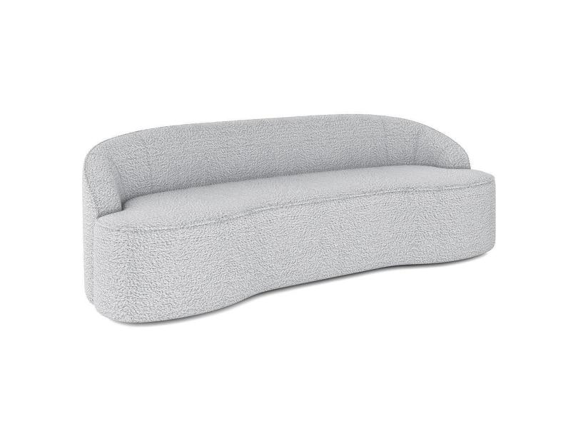 Sofá 3 Lugares Curvo Sala De Estar Living Lótus D02 Bouclê Cinza 210 Cm B-56