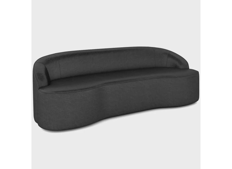 Sofá 3 Lugares Curvo Sala de Estar Living Lótus D02 Couríssimo Preto 180 cm B-159 - Lyam Decor
