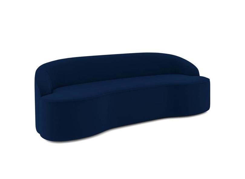 Sofá 3 Lugares Curvo Sala De Estar Living Lótus D02 Veludo Azul Marinho 180 Cm C-304