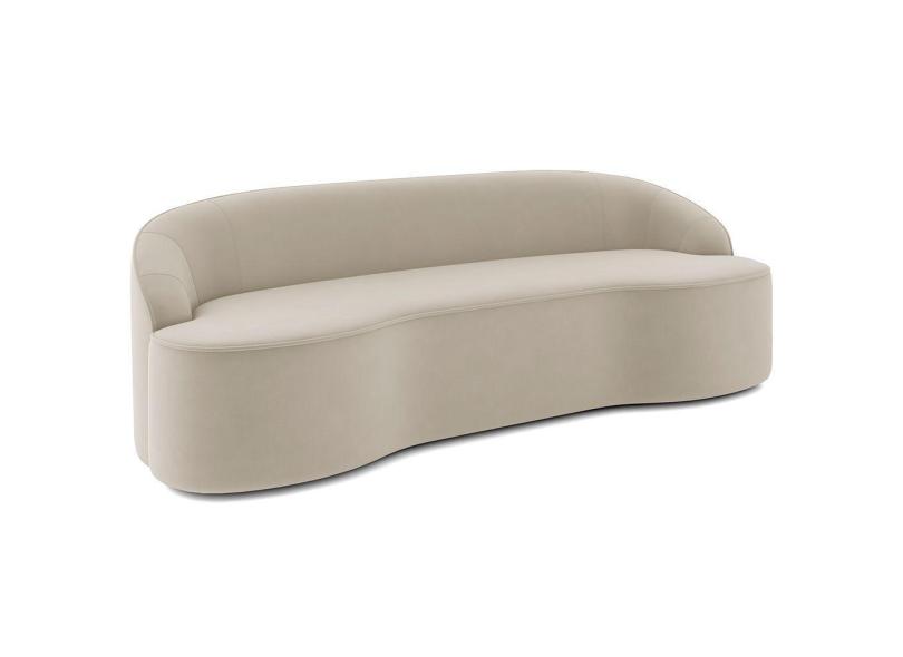 Sofá 3 Lugares Curvo Sala de Estar Living Lótus D02 Veludo Bege 210 cm C-309 - Lyam Decor