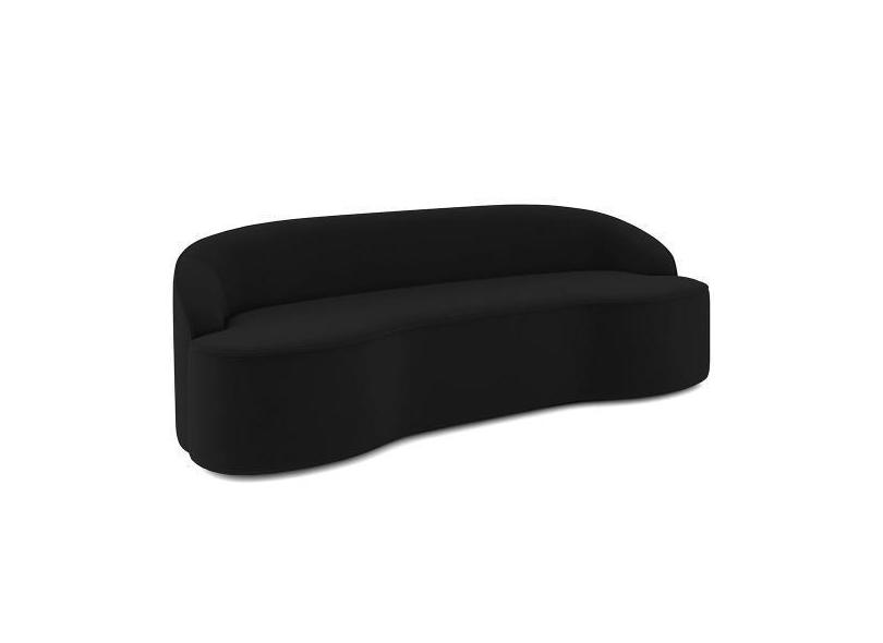 Sofá 3 Lugares Curvo Sala de Estar Living Lótus D02 Veludo Preto 180 c