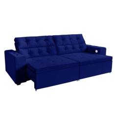Sofá 3 Lugares Estella 2,20 Metros Azul Retrátil Reclinável Tecnologi