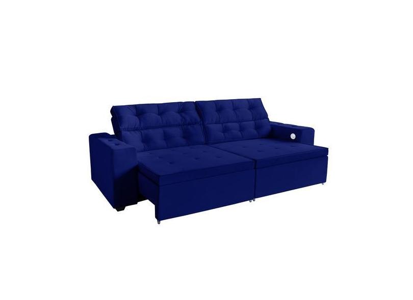 Sofá 3 lugares Estella 2,50 metros Azul Retrátil Reclinável Tecnologi