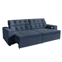 Sofá 3 lugares Estella 2,60 metros Chumbo Retrátil Reclinável Tecnolo