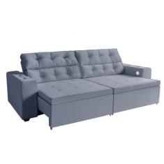 Sofá 3 Lugares Estella 2,60 Metros Cinza Retrátil Reclinável Tecnolog