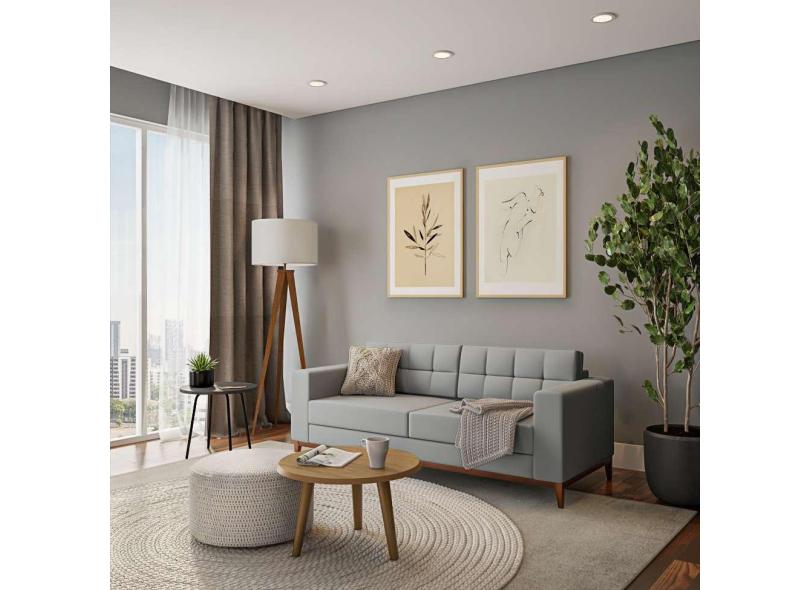 Sofá 3 Lugares Life Pés e Base em Madeira Linho Cotton Cinza 180 cm