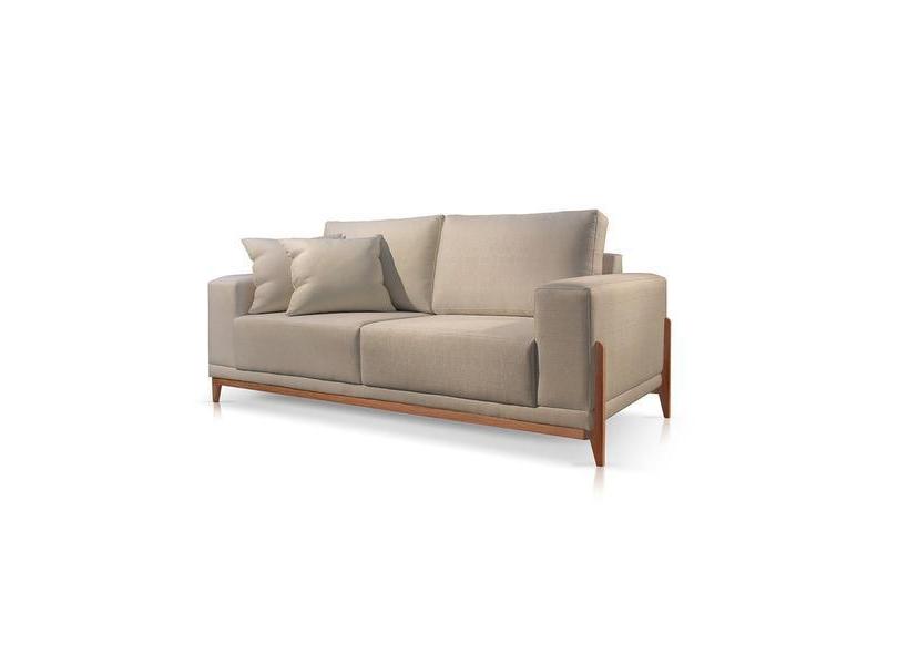 Sofá 3 Lugares linho bege almofada solta sala tv bellagio 2.10m - Polt