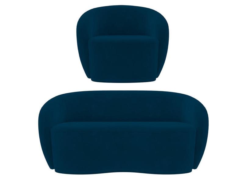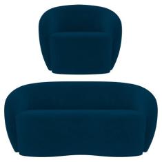 Sofá 3 Lugares Living 180cm E 1 Poltrona Giratória Garbin K04 Veludo Azul Marinho - Mpozenato