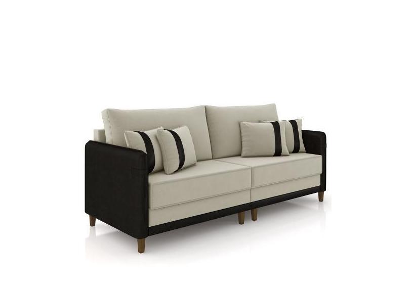 Sofá 3 Lugares Living 192cm Zoe K04 Veludo Bege/Preto - Mpozenato