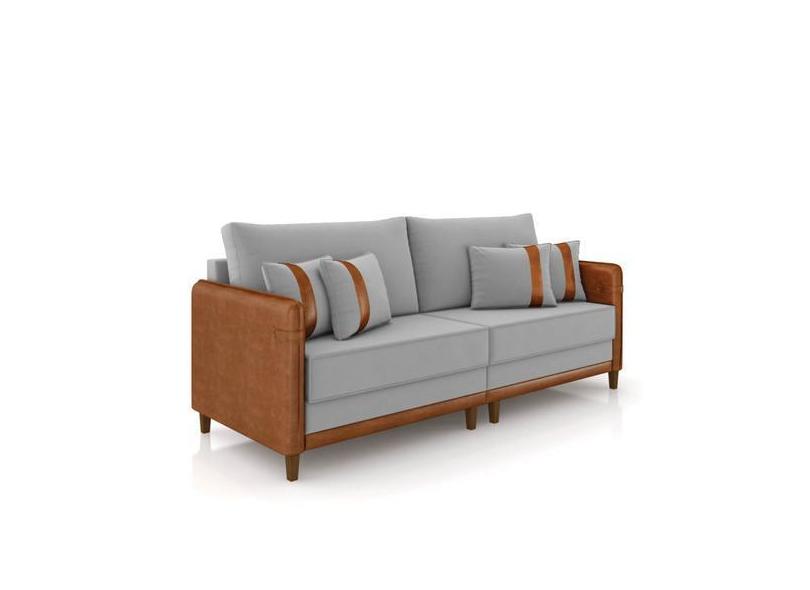 Sofá 3 Lugares Living 212cm Pé Madeira Valença Nozes/Veludo K01 - D'Ro
