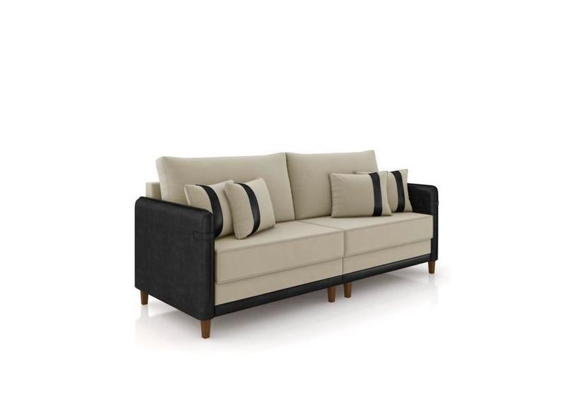 Sofá 3 Lugares Living 212cm Pé Madeira Valença Pto/Veludo Bege K01 - D