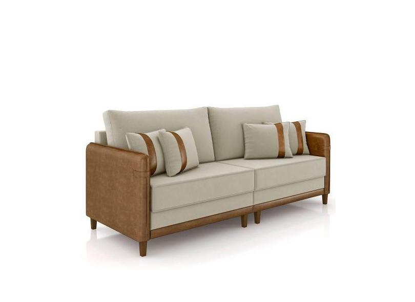 Sofá 3 Lugares Living 212cm Zoe K04 Veludo Bege-marrom - Mpozenato