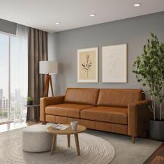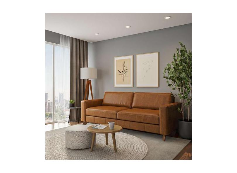 Sofá 3 Lugares Montenegro Couro Mel - Mobly