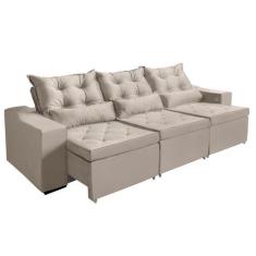 Sofá 3 Lugares Opala 2,10 Metros Bege Retrátil Reclinável Tecnologia