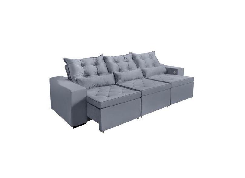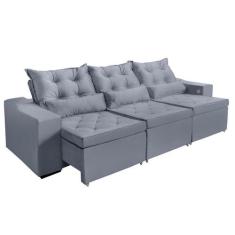 Sofá 3 Lugares Opala 2,10 Metros Cinza Retrátil Reclinável Tecnologia