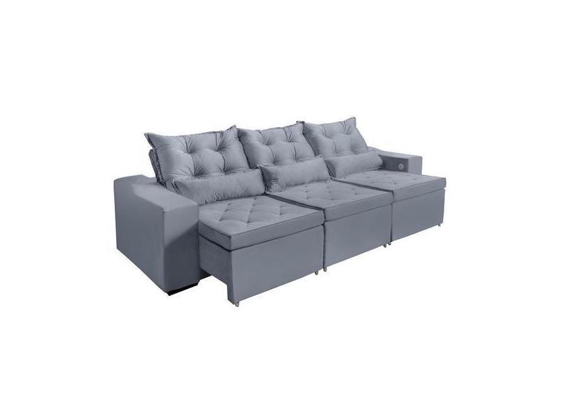Sofá 3 Lugares Opala 2,20 Metros Cinza Claro Retrátil Reclinável Tecn