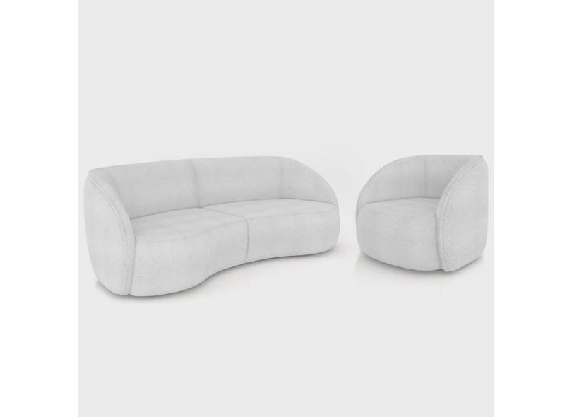 Sofá 3 Lugares Orgânico 288cm e Poltrona Zion M22 Boucle Branco - Mpozenato