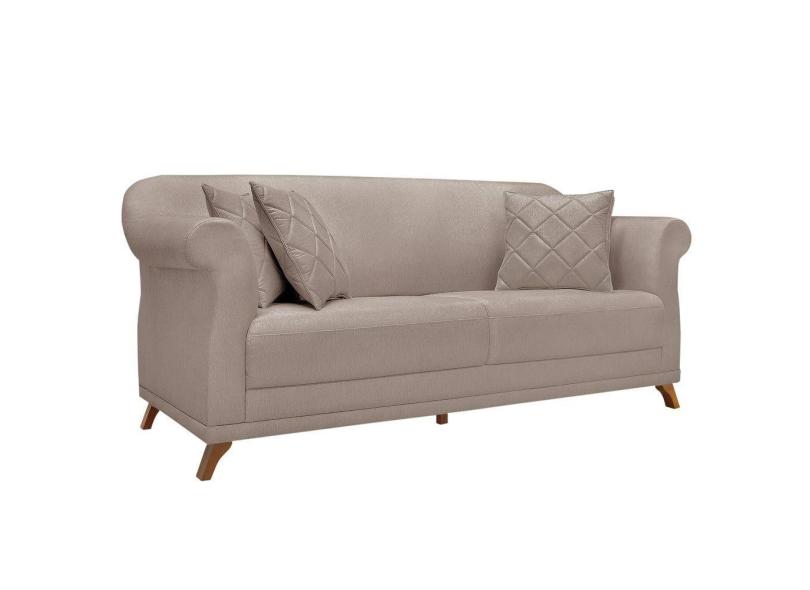 Sofá 3 Lugares para Sala de Estar 200cm Eva Linho Marrom - Montanaris Decor