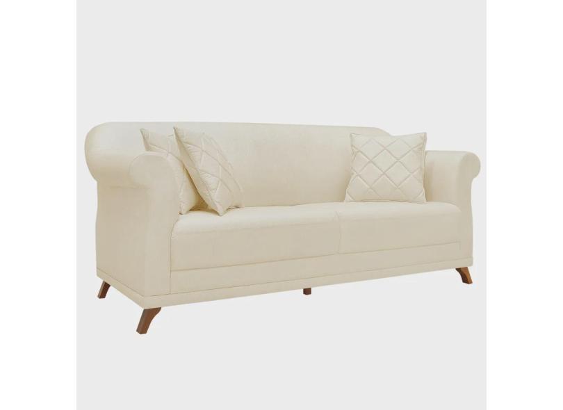Sofá 3 Lugares para Sala de Estar 200cm Eva Linho Pérola - Montanaris Decor