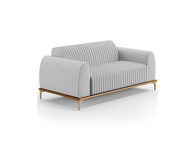 Sofá 3 Lugares Para Sala de Estar Molino 180 cm D02 Pés D'Ouro Linho Cinza D-315 - Lyam Decor