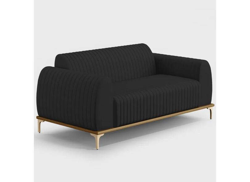Sofá 3 Lugares Para Sala De Estar Molino 210 Cm D02 Pés D'ouro Veludo Preto C-300 - Lyam Decor