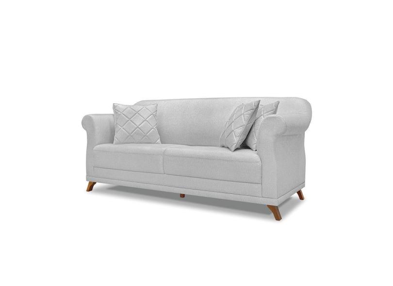 Sofá 3 Lugares Pé De Madeira Julieta 200 Cm Linho S04 - D'rossi Cor Grigio